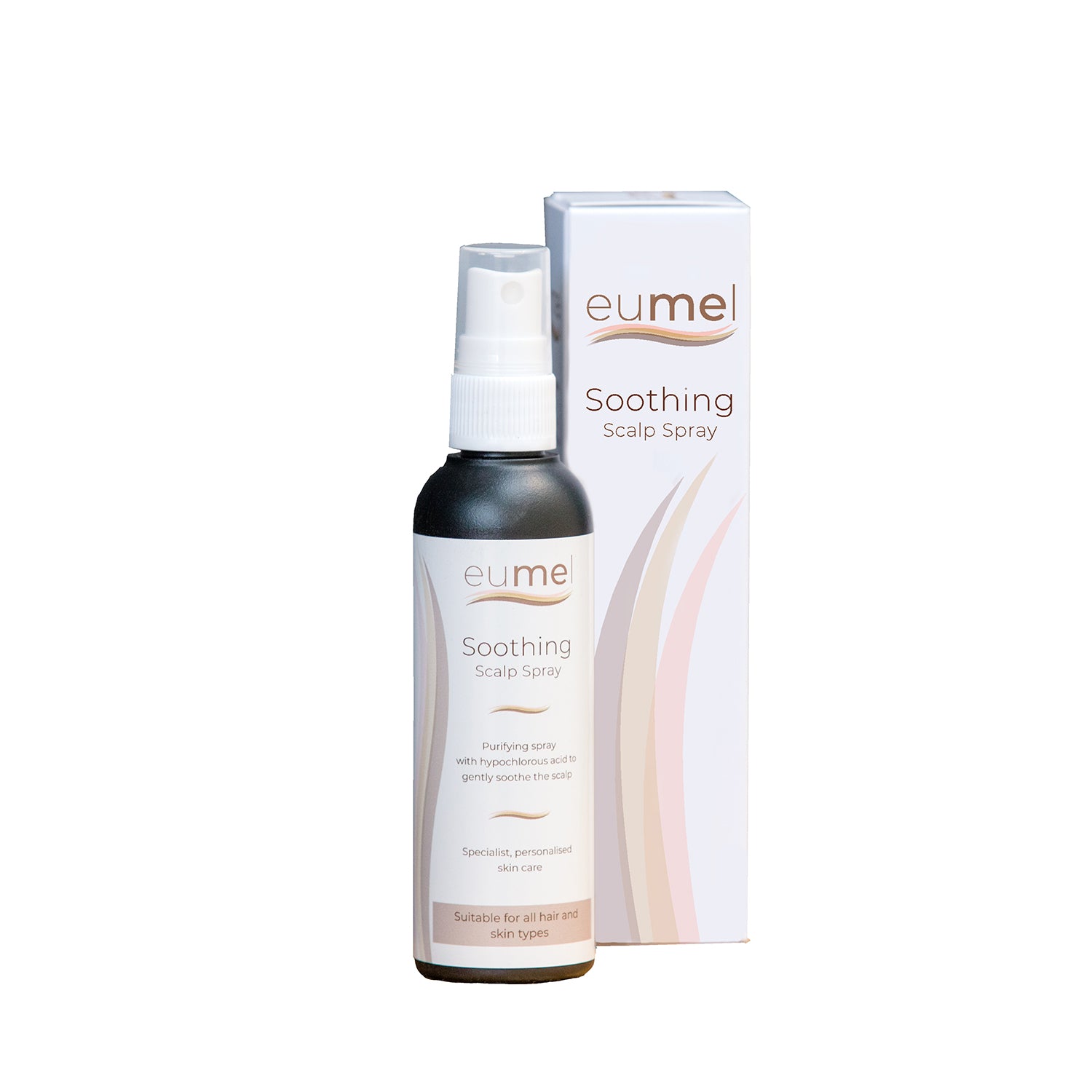 Eumel Soothing Scalp Spray (100ml) is an effective, yet gentle, scalp spray made with hypochlorous acid to calm and restore balance to the scalp. Ideal for the hygienic care of the scalp - especially if prone to bacterial imbalance.